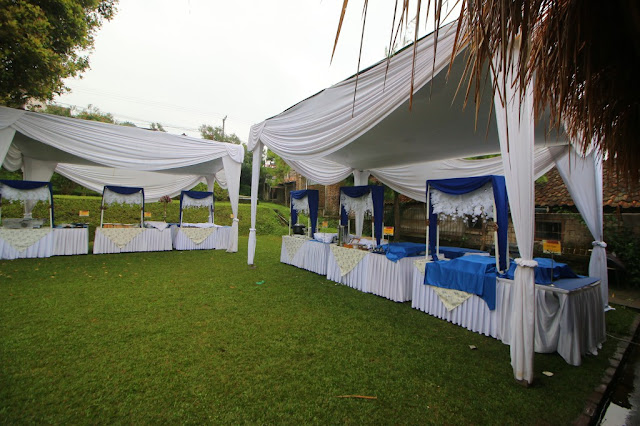 Untuk catering ini juga sudah termasuk dekorasi prasmanan dan gubukan. Untuk pilihan warna bisa disesuaikan dengan tema yang diinginkan. Waktu itu, saya pilih warna biru sesuai dengan warna konsep utama di acara pernikahan saya.
